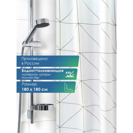 Штора для ванной комнаты и душа 180х180 см водоотталкивающая из полиэстера от российского производителя товаров для дома - ВИЛИНА. Выполнена штора из качественного полиэстера с водоотталкивающей и антибактериальной пропиткой, которая препятствует появлению на шторе плесени и других вредных грибков. Полотно отличается высокими показателями износостойкости, цветостойкости и цветопередачи. Штора со временем не выцветает, а рисунок не вымывается.