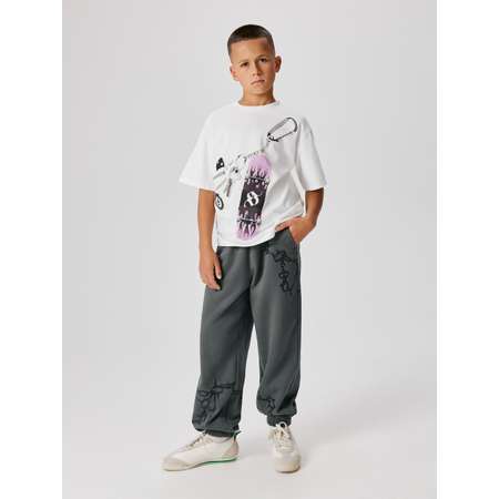 Детские теплые брюки-джоггеры с принтом цепей изготовлены из футера с мягким начесом на изнанке, который обеспечивает тепло и уют. Эластичный пояс на резинке обеспечивает комфортную посадку на разные типы фигур и дополнительно регулируется шнурком. Объёмный крой создает расслабленный модный силуэт и дарит легкость движений, что особенно важно для активных детей. Практичности добавляют вместительные карманы по бокам. Низ брючин собран на резинку для лучшего прилегания к телу и сохранения тепла. Стильный принт с изображением цепей придает образу смелый и дерзкий акцент, благодаря которому лук смотрится ярко и незабываемо. Стилизуйте утепленные джоггеры для мальчика со свободной футболкой, чтобы создать модный спортивный образ.