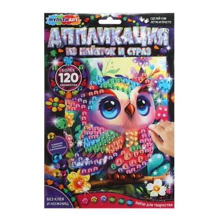 Набор для творчества аппликация из пайеток и страз «Совушка» ТМ «Мульти Арт» отличный подарок для вашего ребёнка, который будет способствовать развитию его творческих способностей.