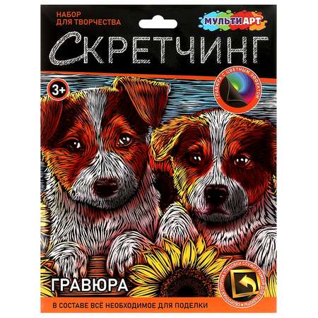 Набор для творчества — скретчинг гравюра «Щенки с подсолнухами» ТМ «Мульти Арт» — отличный подарок для ребёнка, который будет способствовать развитию его творческих способностей: