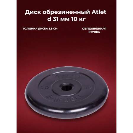 Цена на D 31 мм чёрный 10,0 кг Atlet MbBarbell Диск обрезиненный - 3963 ₽.