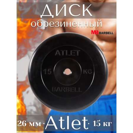 D 26 мм чёрный 15,0 кг Atlet MbBarbell Диск обрезиненный