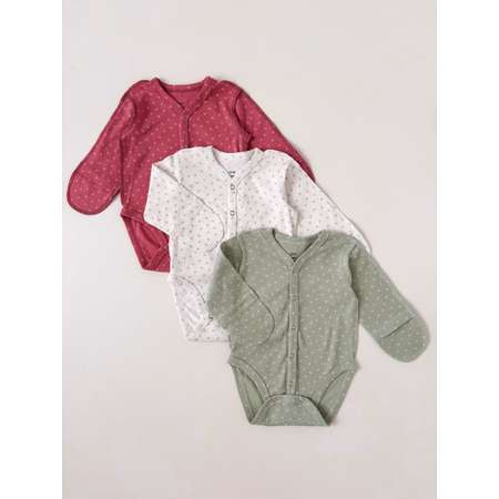 Комплект из 3 боди для малышей с застежкой спереди. Бодики для новорожденных выполнены из хлопка высшего качества. Детский набор отлично подойдет на выписку в роддом. Комплект для новорожденных прекрасно подойдет в качестве домашней одежды. Нательный комплект для мальчиков и девочек можно купить в подарок новорожденному