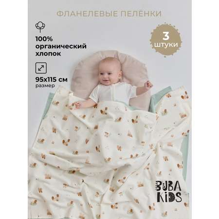 Пелёнка BUBA KIDS Бобры на хуторе фланель 95х115 см 3 шт.
