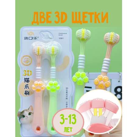В наборе 2 разноцветных зубных 3д щетки с табалапкой.