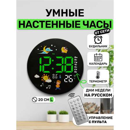Настенные электронные часы - идеальное сочетание стиля и функциональности для вашего дома или квартиры. Эти часы не только точно покажут время, но и обеспечат вас актуальной информацией о температуре в помещении, дате и дне недели на русском языке. Идеальный выбор для тех, кто ценит удобство и современный дизайн в одном устройстве. Подчеркните свой интерьер с этим элегантным решением, которое прекрасно впишется в любое пространство. Такой предмет интерьера представлен в необычном и минималистичном стиле, который актуален всегда. Часы настенные электронные можно спокойно повесить в спальной комнате взрослых или в детской комнате детей, не переживая, что их сон может быть нарушен. Крупный циферблат смогут издалека увидеть люди пожилого возраста, благодаря большим цифрам. В нашем магазине представлены белый и зеленый циферблат на выбор. Создайте уют в своем доме, следите за временем, температурой – все это в одних настенных электронных часах. Такие оригинальные аксессуары отлично дополнят обстановку и станут украшением кухонного пространства, офисного кабинета руководителя, холла, помещения салона красоты. LED Часы настенные легко украсят не только квартиру, но и кабинет. Стильные интерьерные часы выполнены в простом лаконичном дизайне. Они гармонично впишутся в интерьер гостиной, спальни, офиса, кухни, детской комнаты. А также часы электронные настенные послужат отличным подарком на любой праздник. Часы светящиеся изготовлены из прочного и качественного ABS-пластика. За счет этого они выглядят еще более стильно и современно. Электронные настенные часы с подсветкой работают только от сети, батарейка используется только для сохранения настроек (в комплекте). Ими просто управлять с помощью пульта. Большие настенные электронные часы - это отличное дизайнерское решение для кухни и спальни, гостиной комнаты, зала или офиса. Часы настенные бесшумные для дома и кухни станут отличным оригинальным подарком женщине, девочке, подростку, мужчине, папе, коллеге, девушке, парню, маме, бабушке на любой праздник: женский праздник 8 марта, юбилей, день рождения, свадьбу. Обратите внимание, что настенные часы - это не сверхточный измерительный прибор, поэтому могут иметь небольшую погрешность в показателях температуры/влажности.