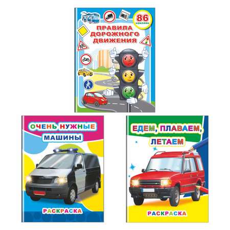 Комплект "Юный Водитель и Любитель Техники": Правила дорожного движения, Раскраски "Едем, плаваем, летаем" и "Очень нужные машины"