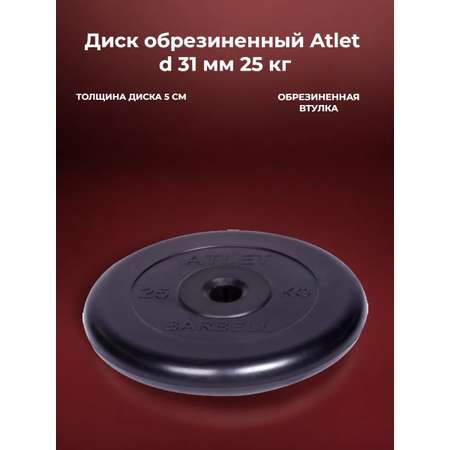 Цена на D 31 мм чёрный 25,0 кг Atlet MbBarbell Диск обрезиненный - 9034 ₽.