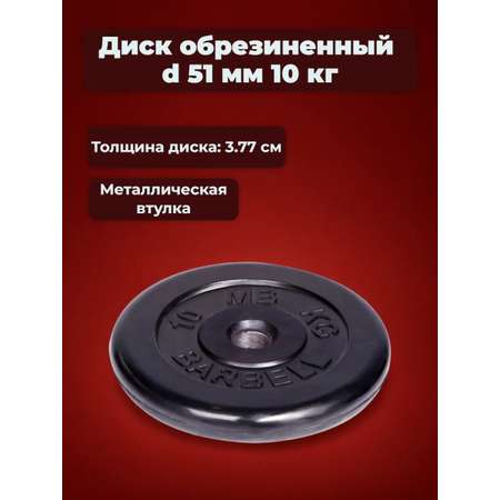 Цена на D 51 мм чёрный 10,0 кг MbBarbell Диск обрезиненный - 4573 ₽.