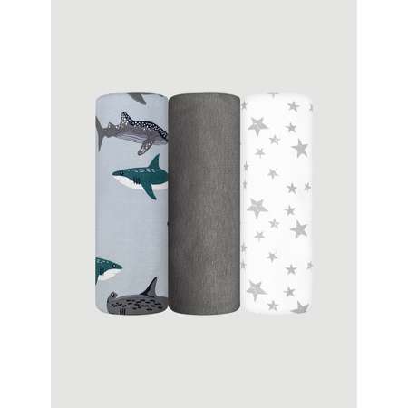 Пелёнка Mjolk Акулы/Звёзды/Steel Grey трикотаж 85х120 см 3 шт.