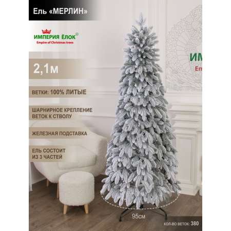 Ель Мерлин заснеженная узкая литая Империя Ёлок 210 см