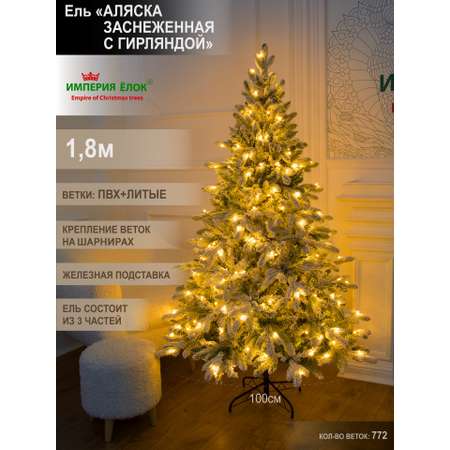 Ель Аляска заснеженная с гирляндой Империя Ёлок 180 см