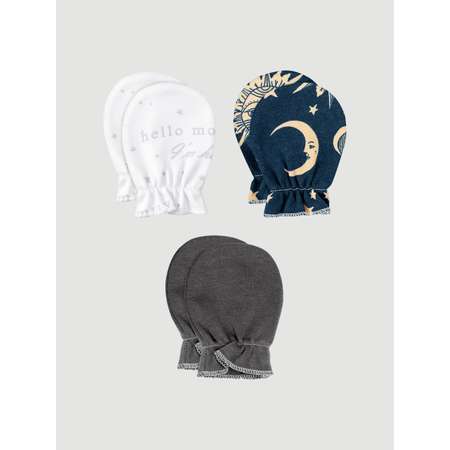 3 пары стильных рукавичек на резиночке – необходимая вещь при уходе за маленьким ребёнком. Антицарапки рассчитаны на детей с первых дней жизни и до 2-3х месяцев, пока младенец ещё не контролирует свои движения и может себя поцарапать. Для защиты нежной кожи от крошечных, но острых ноготков, рекомендуем надевать рукавички малышу в период бодрствования и сна, а также под пеленальный кокон.