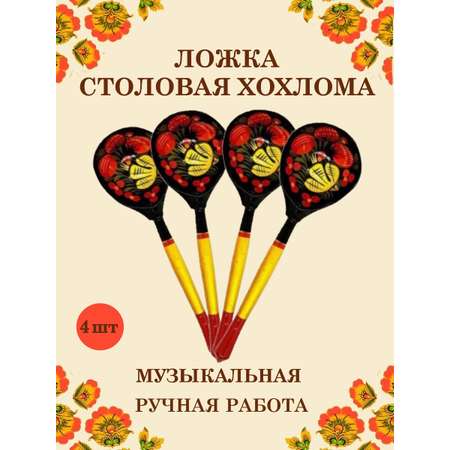 Ложка деревянная столовая Хохлома Оптом музыкальная расписная 4 шт