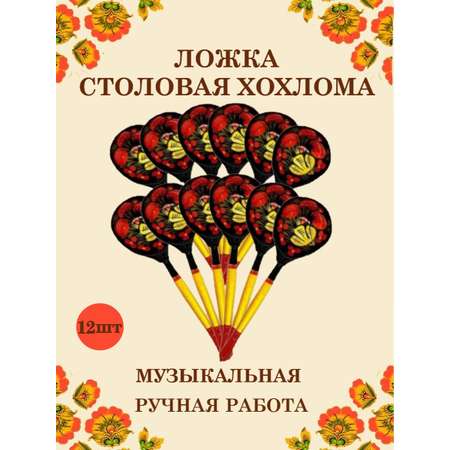 Ложка деревянная столовая Хохлома Оптом музыкальная расписная 12 шт