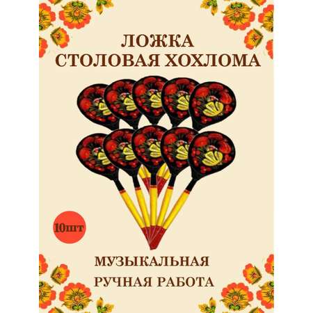 Ложка деревянная столовая Хохлома Оптом музыкальная расписная 10 шт