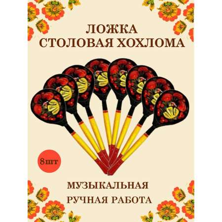 Ложка деревянная столовая Хохлома Оптом музыкальная расписная 8 шт.