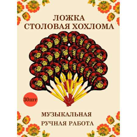 Ложка деревянная столовая Хохлома Оптом музыкальная расписная 30 шт.