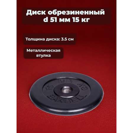 Цена на D 51 мм чёрный 15,0 кг MbBarbell Диск обрезиненный - 6431 ₽.