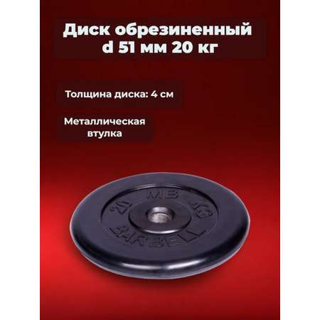 Цена на D 51 мм чёрный 20,0 кг MbBarbell Диск обрезиненный - 8513 ₽.