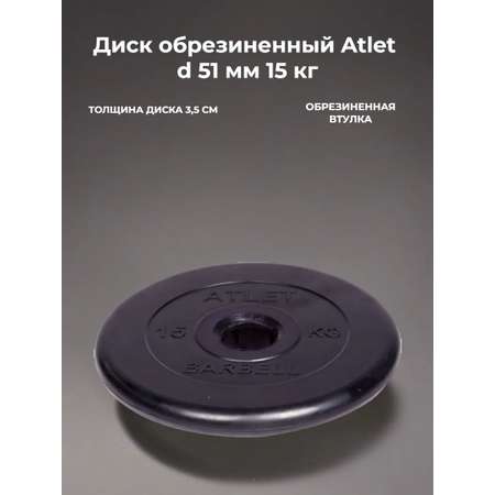 Цена на D 51 мм чёрный 15,0 кг Atlet MbBarbell Диск обрезиненный - 5628 ₽.