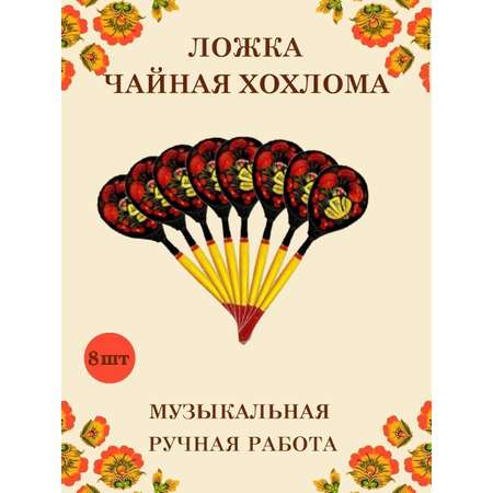 Ложка деревянная чайная Хохлома Оптом музыкальная расписная 8 шт.