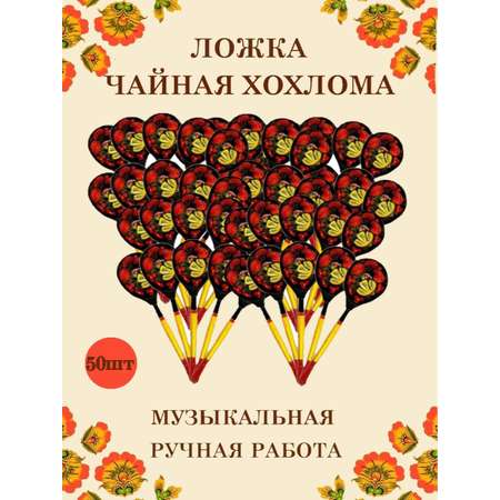 Ложка деревянная чайная Хохлома Оптом музыкальная расписная 50 шт.