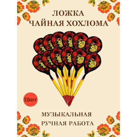 Ложка деревянная чайная Хохлома Оптом музыкальная расписная 12 шт