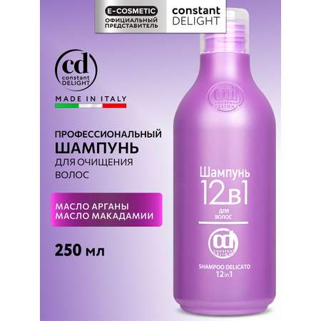 Профессиональный шампунь CONSTANT DELIGHT 12 в 1 создан для ухода за любым типом: ослабленными, окрашенными, тусклыми, сухими и непослушными волосами. Многофункциональный состав на основе природных компонентов обеспечивает комплексное восстановление и защиту. Подходит обладателям как прямых, так и волнистых волос, страдающих от ломкости, обезвоженности, тусклости или потери объёма. Формула содержит масло макадамии, льна и арганы, которые насыщают локоны питательными веществами и придают шелковистость. Экстракт морских водорослей и аминокислоты кератина укрепляют структуру, делают волосы гладкими и эластичными. Гидролизованный пшеничный белок и шёлк восстанавливают повреждённые участки, повышают плотность и дарят мягкость. Специальные компоненты сохраняют цвет окрашенных волос и защищают от УФ лучей. Дополнительная термозащита оберегает волосы, а антистатический эффект устраняет пушистость и облегчает укладку. Оптимальный уровень pH поддерживает баланс кожи головы, обеспечивая деликатное очищение без пересушивания. Увлажняющий шампунь бережно ухаживает, придаёт естественный блеск, делает волосы послушными и живыми. После применения волосы становятся гладкими, блестящими, сильными и защищёнными от внешних факторов.