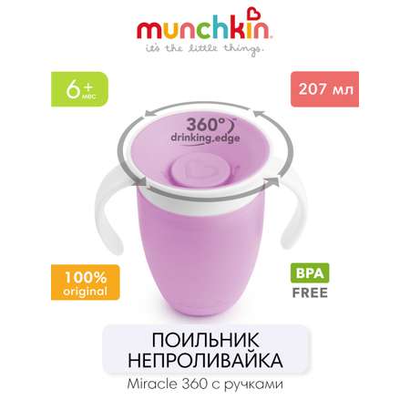 Munchkin поильник непроливайка MIRACLE® 360° с ручками 207 мл. с 6 мес., голубой