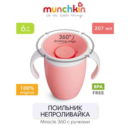 Munchkin поильник непроливайка MIRACLE® 360° с ручками 207 мл. с 6 мес., голубой