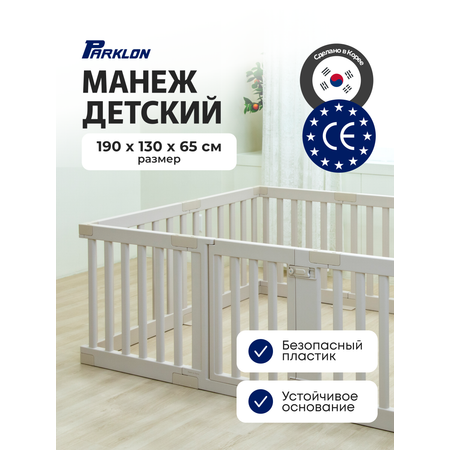 Манеж Parklon станет любимым игровым местом у детворы. Комфортная детская территория обязательно понравится девочкам и мальчикам младшего возраста. Своя уютная комнатка с дверцей располагает к самостоятельным играм. Огороженное пространство идеально подойдет и активно ползающим малышам до года. На полу внутри ограждения просторно и безопасно. Грамотно спроектированная напольная конструкция прочна и выдерживает вес опирающегося на нее ребенка. Противоскользящие опоры обеспечивают забору надежность и устойчивость на любой поверхности. Расстояние между прутьями 6 см – ручки или ножки не застрянут в большом зазоре. Все складные детали взаимозаменяемы – собирайте секции в любом порядке, меняя размеры и конфигурации, или совмещайте их с другими такими же изделиями. А составленные в одну линию, они помогут перегородить входы в помещения с опасными зонами. Манеж изготовлен из гипоаллергенного пищевого пластика – это нетоксичный сертифицированный материал. Пластиковый корпус легко моется и дезинфицируется. Стильный внешний вид и универсальный дизайн в спокойных тонах органично смотрятся в современных интерьерах.