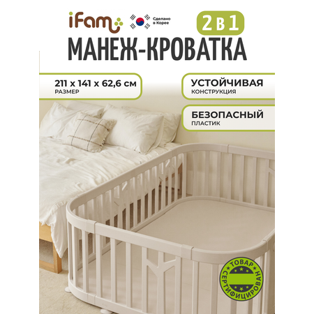 Детский манеж-кроватка 2 в 1 iFAM Birch Round напольный, бежевый