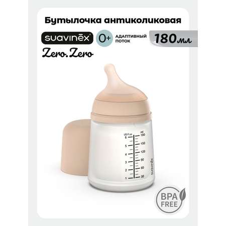 Zero.Zero бутылочка для новорожденных 180 мл. Бутылочка для кормления 0+ SUAVINEX Zero.Zero 180 мл. размер потока А (адаптивный). Адаптивный поток жидкости: соска с адаптируемым потоком, который пропорционален силе всасывания. Специально разработан для комбинированного кормления. Подходит для матери и ребенкаю. Изготовлена испанским брендом детских бутылочек № 1 Suavinex. Антиколиковая бутылочка. Помогает уменьшить колики и не дает ребенку глотать воздух. Запатентованный медицинский мешочек для предотвращения колик внутри бутылочки сжимается во время сосания, предотвращая заглатывание воздуха. Не содержит бисфенола А. Идеально подходит для новорожденных; показана даже недоношенным детям со слабым сосанием. Физиологически имитирует работу молочных желез во время кормления грудью. Специально разработана для сочетания грудного вскармливания и кормления из бутылочки. Ортодонтическая соска одобрена SEOP (Испанским обществом детской стоматологии). Разработана таким образом, чтобы свести к минимуму отторжение детских бутылочек и путаницу с сосками. Физиологически имитирует работу молочных желез во время кормления грудью.