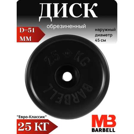 D 51 мм чёрный 25,0 кг MbBarbell Диск обрезиненный