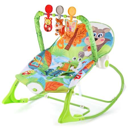 - трехточечный ремень безопасности надежно фиксирует малыша в шезлонге, ремень расстегивается;