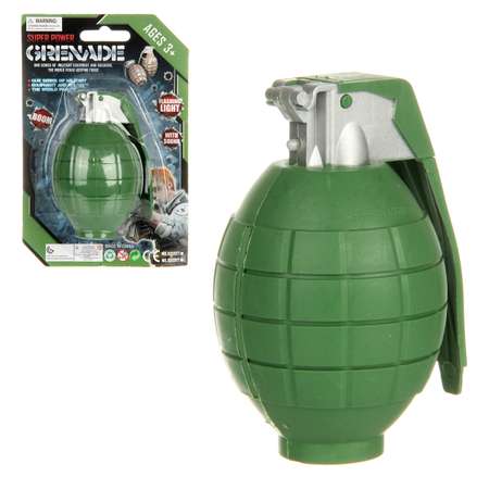 Игрушечная граната - верный спутник храброго бойца. Компактная, удобно ложится в руку, занимает мало места. Если нажать на ее ручку, станут раздаваться звуки отсчета и взрыва, лампочка будет подсвечиваться.