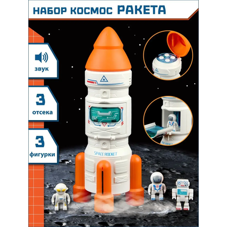 В комплекте игрушка космический корабль, 3 космонавта, 9 карточек с изображением планет.