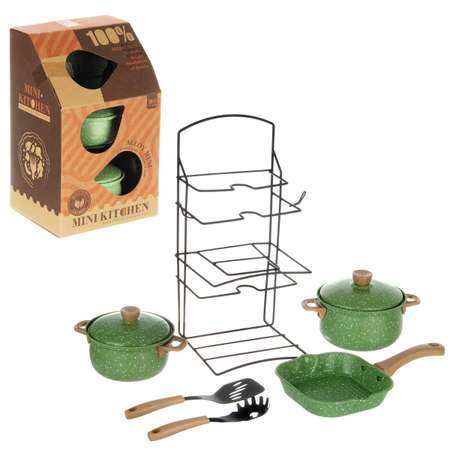 Набор металлической посуды для тематических игр. Компактный, оптимальный для детских ручек размер, большое количество предметов, удобные ручки. Долговечный материал металл, приятная расцветка и красивый дизайн. Отличный подарок в лаконичной и элегантной крафтовой упаковке.