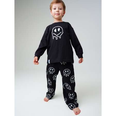 Черная детская трикотажная пижама для мальчика от PlayToday — стильный и удобный костюм, состоящий из лонгслива с длинным рукавом и брюк на резинке. Модель разработана специально для детей от 3 до 7 лет и станет отличным решением как для дома, так и для детского сада.