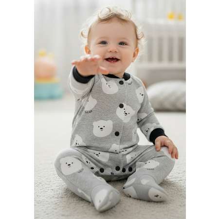 Ножки на кнопках. Швы внутренние. Ножки закрытые во всех размерах. Манжетки рукавов на резинке.
