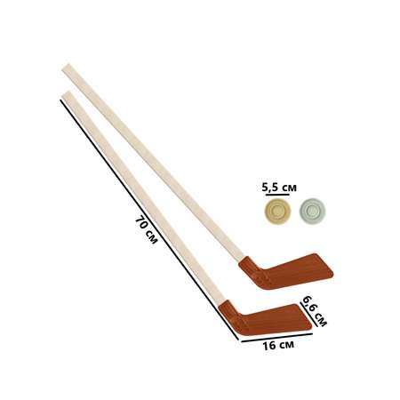 В наборе клюшка 80 см 2 шт., шайба 2 шт.