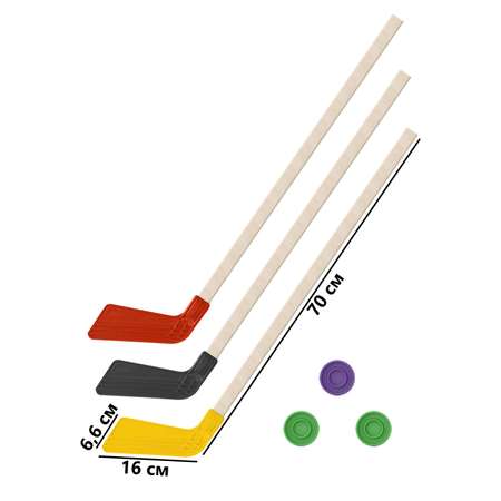 В наборе клюшка 80 см 3 шт., шайба 3 шт.