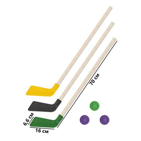 В наборе клюшка 80 см 3 шт., шайба 3 шт.
