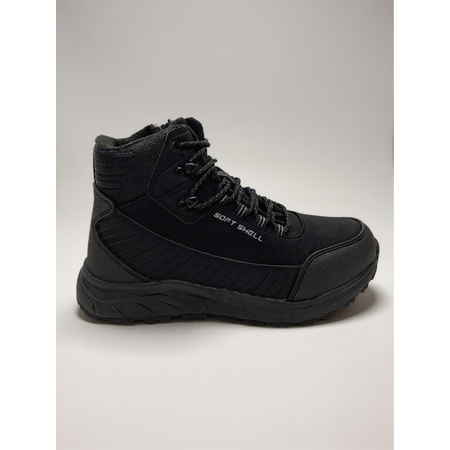 Ботинки зимние для мальчика. Утепленные ботинки софтшелл черные оптимальная осенняя обувь для мальчика в городе и для активного отдыха. Ботинки для мальчика. Верхний слой из материала SoftShell - защита от влаги и ветра плюс комфортный микроклимат внутри. Материал отталкивает влагу, эластичен и прочен. Внутри шерстяной мех средней плотности и стелька сохраняют тепло и отводят влагу, ноги не будут потеть.