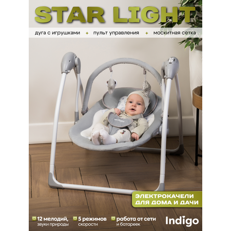 Электронные детские качели Indigo Star light оснащены всем необходимым, чтобы значительно облегчить быт новоиспеченных родителей.