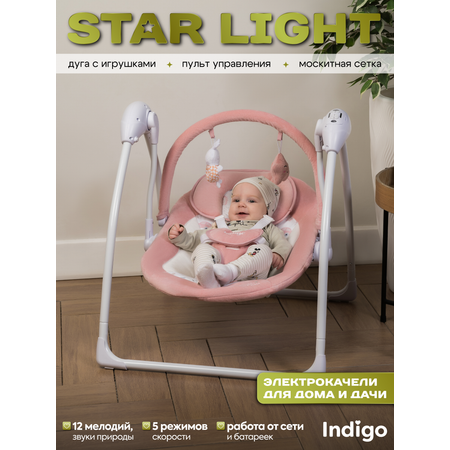 Электронные детские качели Indigo Star light оснащены всем необходимым, чтобы значительно облегчить быт новоиспеченных родителей.