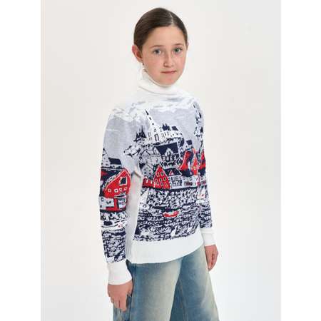 Свитер детский с горлом – идеальный выбор для осеннего и зимнего гардероба. Благодаря мягкой пряже изделие отлично подходит для ребенка, обеспечивая комфортные тактильные ощущения без раздражения кожи или неприятного запаха. Трикотажный материал приятен на ощупь, отличается плотной вязкой и помогает утеплить ребенка в холодную погоду. Такой уютный вариант одежды подходит как мальчику, так и девочке, легко комбинируется с разным стилем вещей: школьная форма, повседневный джемпер или праздничный новогодний образ. Модель выполнена в классическом стиле с акцентом на оригинальный узор: крупный рисунок с элементами архитектуры добавляет свитеру нарядности и модного шарма. Основные цвета изделия – белый, синий и красный – гармонично сочетаются между собой, создавая яркий акцент без излишней пестроты. Крупная вязка делает вещь теплой и практичной для зимних прогулок или уютных вечеров дома. Высокий воротник-ролл надежно защищает горло от ветра и холода, а эластичные манжеты по краю рукавов удерживают тепло внутри. Свободный крой не ограничивает движения ребенка во время активных игр или занятий в школе. Качественные ровные швы гарантируют долговечность изделия – даже после многочисленных стирок свитер сохраняет форму, насыщенность оттенков и аккуратный внешний вид. Приталенный силуэт не ощущается тесным благодаря правильному подбору размеров; это позволяет носить вещь как самостоятельно, так и поверх футболки или кофты. Плюшевый по ощущениям материал приятен малышу любого возраста: от дошкольника до подростка. Универсальность модели особенно важна для родителей — свитер подходит для девочки и мальчика независимо от выбранного стиля одежды: офисный комплект для школы, стильный комплект с джинсами или юбкой на выход либо уютная домашняя одежда для отдыха.