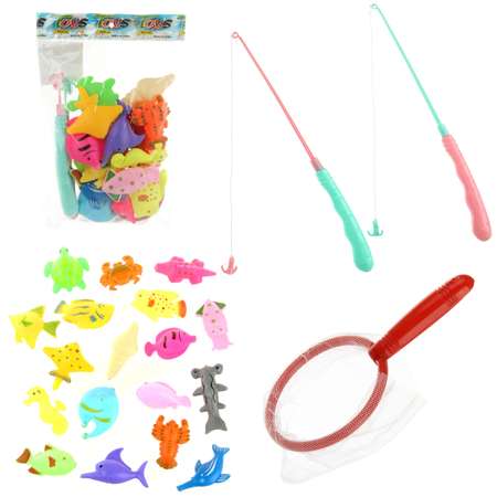 Время веселой и увлекательной рыбалки. У кого окажется больший улов, тот и победил. Морские обитатели выполнены в реалистичным дизайне, а удочки складываются и раскладываются, что сильно упрощает их хранение. Игрушка развивает мелкую моторику координацию. В комплект входит 2 удочки, 2 сачка, 18 морских обитателей.