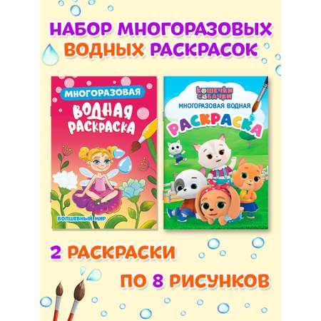 Многоразовая раскраска Проф-Пресс водная. 2 шт. Кошечки собачки+Волшебный мир. 16х23 см